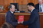 А.В. Дамдинов вручил Почетные грамоты Правительства РБ, Почетные грамоты и благодарственные письма Министерства образования и науки РБ сотрудникам и преподавателям БГУ.