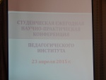 23 апреля 2015 года в Педагогическом институте прошла ежегодная студенческая научно-практическая конференция. В работе приняли активное участие студенты, бакалавры и магистранты всех направлений подготовки. Под руководством своих научных руководителей они осветили и обсудили наиболее актуальные вопросы и проблемы своих научно-практических исследований, как в процессе пленарных докладов, так и в работе научных секций.