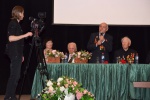 Первым выступил Виктор Федорович Сахаровский. Он рассказал историю о том, как был призван на войну в 1941 г., в 18-летнем возрасте, рассказал в подробностях как принял участие в Сталинградской битве, в боях на западном фронте. Ветеран был ранен в 1943 г., в него попало четыре пули, три из которых удалось изъять, а одну из них, к сожалению, нет. Он по сей день носит ее в себе, и она не дает ему забыть войну. Виктор Федорович отметил, что Сталинградская битва самое крупное сражение, самой великой войны. Для него день Победы – это единственный праздник, объединяющий всех россиян.