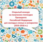 Министерство образования и научки Российской Федерации совместно с Советом по грантам Президента Российской Федерации для государственной поддержки молодых российских ученых и по государственной поддержке ведущих научных школ объявляет открытый публичный конкурс на получение стипендии Президента Российской Федерации для молодых ученых и аспирантов, осуществляющих перспективные научные исследования и разработки по приоритетным направлениям модернизации российской экономики (Конкурс на 2016-2018 гг.)