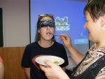 - «Самый изысканный ботаник». Участников с завязанными глазами, кормили преподаватели с тарелочки фруктами и овощами (киви, огурец, свёкла, картофель сырой, морковь, мандарин, помидор, лук, чеснок, банан, тыква, яблоко). Это надо было видеть! Когда после банана приходилось кушать чеснок, а сырой картофель закусывать луком! Но болельщики радовались от души! В этом конкурсе тоже отличился 2 курс – Е.Белых.