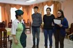 По итогам акции Профком студентов торжественно вручил почетную грамоту Нине Аюшеевне Гомбоевой за доброту и хорошее отношение к студенческому сообществу и 10 новых подносов Столовой БГУ.