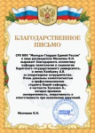 Студенты зарекомендовали себя как ответственные и исполнительные молодые специалисты, за что кафедра политологии и социологии в лице заведующего кафедрой Комбаева Алексея Викторовича была отмечена благодарственными письмами от руководства общественных организаций.