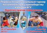 26-27 декабря 2015 года будет проходить Первый межрегиональный турнир по комплексному единоборству на Кубок БГУ "Бурятия против терроризма" по адресу ул.Куйбышева,1А (Дом спорта БГУ). Начало в 10.00 ч.