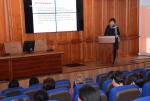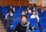 Профессор, директор Педагогического института Н. Ж. Дагбаева рассказала об опыте международного, межэтнического общения в процессе международного сотрудничества Педагогического института с университетом г.Оснабрюк (Германия) и другими коллегами. Также она рассказала о таких проектах преподавателей ПИ, как учебно-методический комплекс «Байкальский сундучок», порекомендовав учителям использовать его в работе, ведь первым шагом к формированию межэтнической толерантности – это воспитание любви к своей природе, истории, культуре.