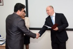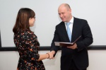 Выпускников поздравил и ректор БГУ, профессор Н. И. Мошкин. Он отметил, что год для университета начинается очень позитивно - вручением дипломов. Николай Ильич поблагодарил за труд преподавателей ИФМК, пожелал первым в 2017 году выпускникам-магистрам БГУ удачи и чтобы полученная квалификация пригодилась в жизни. Ректор БГУ вручил выпускникам дипломы с отличием.