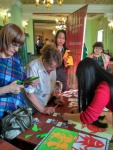 Под чутким руководством преподавателей Института Конфуция зрители смогли за считанные минуты освоить один из видов традиционного народного декоративно-прикладного искусства Китая - китайскую аппликацию. А также научились писать иероглиф «鱼» (рыба), используя кисть и тушь. По-китайски слово «рыба», «юй», созвучно слову «изобилие», поэтому изображение рыбы считается благоприятным символом, сулящим счастье, процветание, богатство и гармонию.