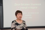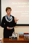 К.и.н., доцент О.Н. Полянская подготовила сообщение об основных этапах жизни, научной и педагогической деятельности Д.Б. Улымжиева. Были представлены интересные фотографии, запечатлевшие события из жизни и профессора Д.Б. Улымжиева, и исторического факультета, и в целом вуза.