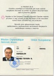 К диплому прилагается Удостоверение – паспорт Дипломатической миссии Европейского Союза с просьбой всем официальным лицам предоставлять предъявителю настоящего документа необходимую помощь и защиту.