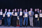 24 марта в актовом зале главного корпуса Бурятского государственного университета состоялась торжественная церемония закрытия. Дипломами Гран-при с присвоением почетных званий «Дангина математики–2018» и «Гэсэр математики–2018» и ценными призами были награждены 12 девочек и мальчиков, показавших самые высокие результаты по каждому классу. Среди них Молонов Борис (6 класс, МАОУ "Лингвистическая гимназия №3"), Бальжинимаева Дулма (6 класс, ГБОУ "РБНЛИ №1"), Минеев Дмитрий (7 класс, МАОУ "СОШ №19"), Петрова Маргарита (7 класс, МАОУ "Лингвистическая гимназия №3"), Алдаров Артём (8 класс, МАОУ "Гимназия №14"), Дашиева Валерия (8 класс, МБОУ "Российская гимназия №59"), Ханхараев Ардан (9 класс, МАОУ "Гимназия №14"), Ханеева Динара (9 класс, МАОУ "СОШ №49"), Туголуков Кирилл (10 класс, МАОУ "СОШ №19"), Доржиева Алтана (10 класс, ГБОУ "РБНЛИ №1"), Булдаев Баир (11 класс, МАОУ "СОШ №19" ), Минеева Дарья (11 класс, МАОУ "СОШ №19"). Также участникам, продемонстрировавшим высокие результаты, были вручены дипломы I, II и III степени (169-ти участникам), 13-ти 11-классникам – сертификаты участника и благодарственные письма учителям (79 благодарностей). Подробнее на сайте Олимпиады imi.bsu.ru/sagaalgan. Специальными грамотами за оригинальное решение алгебраической и геометрической задач были награждены два учащихся 11 классов. Украсили церемонию закрытия творческие коллективы Бурятского государственного университета.