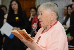 Со словами поздравления выступила председатель Совета ветеранов БГУ Светлана Васильевна Евдокимова. Она рассказала о единственном ныне здравствующем ветеране Великой Отечественной войны БГУ Александре Гуружаповиче Гуружапове, которому в 2019 году исполнится 100 лет.