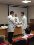 В жюри входили: Хитрихеев В.Е., зав. кафедрой госпитальной хирургии, д.м.н., Саганов В.П., д.м.н., доцент кафедры госпитальной хирургии, Плеханов А.Н., гл. врач НУЗ «Отделенческая клиническая больница», зав. кафедрой факультетской хирургии, д.м.н., профессор, Жигаев Г.Ф., д.м.н., профессор кафедры госпитальной хирургии., Раднаев Э.Б., главный врач ГУАЗ «РКБСМП им. В.В. Ангапова», к.м.н., Бодоев А.В., к.м.н., доцент кафедры факультетской хирургии, Башкуев Б.Р. ассистент кафедры госпитальной хирургии. В ходе олимпиады участники показали высокий уровень знаний по топографической анатомии и оперативной хирургии, рентгенологии, хирургическим болезням. По итогам олимпиады 3 команды заняли призовые места. Награждение проводили Хитрихеев В.Е. зав.кафедрой госпитальной хирургии, д.м.н. и Раднаев Э.Б., главный врач ГУАЗ «РКБСМП им. В.В. Ангапова», к.м.н.