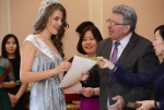Заведующая кафедрой теории социальной работы Антонова Надежда Сергеевна вручила именной сертификат стипендии Вестеровского Руслана Николаевича (заместителя Председателя Банка России) студентке 4 курса направления подготовки «Социальная работа» Франко Татьяне. [для справки – Вестеровский Руслан Николаевич, выпускник СПФ, 15 лет назад учредил именную стипендию, и ежегодно выплачивает ее лучшему студенту направления подготовки социальная работа].