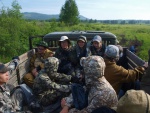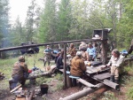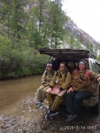 В Баунтовском районе к нашей команде присоединились замечательный человек, педагог и ученый, к.г.н., руководитель геолого-спелеологического кружка «Долган» Олег Николаевич Морозов, а также старейшина эвенкийского рода чильчигир Владимир Михайлович Торгонов, заведующий краеведческим отделом МБУК «Баунтовская ЦБС», уполномоченный по делам КМНС в РФ в Народном Хурале РБ Лариса Владимировна Мурзакина и члены кружка «Долган» Николай, Артем и Павел.