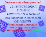 Уважаемые абитуриенты! Прием договоров о целевом обучении завершается 12 августа в 18:00 ч.