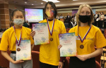 Победители секции «Биология» - Ксения Бурунова и Доржи Цоктоев награждены дипломами I степени, медалями и кубками.