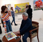 Большой неожиданностью и подарком стало участие самого художника. Бальжинима Доржиев рассказал о своей жизни, о творчестве и ответил на интересные вопросы посетителей выставки. Также было представлено более 50 работ.
