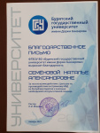 От всей души поздравляем Семенову Наталью Александровну с получением благодарственного письма центром по противодействию экстремизму МВД по Республике Бурятия, в связи с проводимой работой по противодействию экстремистским проявлениям пользователей, в том числе в сети Интернет, налажено тесное взаимодействие с сотрудниками уголовного права и криминологии юридического факультета ФГБОУ «БГУ».