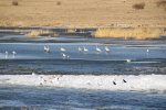 Так что теперь понятно, чем питаются в еще голодное ранневесеннее время многочисленные чайки, бакланы, цапли на этом глухом замерзшем озере... . Мы шли по льду озера и видели, что активно ходили по льду в камышах и, наверное, тоже кормились ротаном - серые цапли (около 80 особей), парочка больших бакланов, 2 серых журавля..