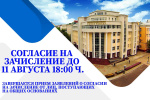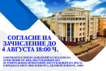 - 4 августа в 18:00 ч. завершается прием заявлений о согласии на зачисление от лиц, поступающих без вступительных испытаний, поступающих на места в пределах квот (вне конкурса, целевой конкурс, БВИ) .