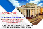 Напоминаем, что согласие на зачисление должно быть подано только одно и в одном вузе ( направлении).