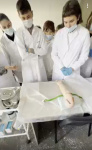 После экскурсии у ребят была возможность пройти тренинги на симуляторах. Они научились оказывать первую помощь, проводить сердечно-лёгочную реанимацию, получили первичные навыки на симуляторе для проведения экстракорпоральных хирургических вмешательств, освоили навыки при родовспоможении и т.д.