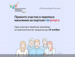 В нашей стране проходит Всероссийская перепись населения, она проводится с целью выявления темпов и структуры социально-экономических процессов. Данные, предоставленные жителями России, помогут сформировать стратегические планы развития городов, регионов и государства в целом. В этом году пройти перепись можно самостоятельно на портале Госуслуг, это значительно упрощает опрос и сокращает время. Просим вас проявить активность и принять участие в переписи любым удобным способом.