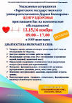 ЦЕНТР ЗДОРОВЬЯ приглашает Вас на комплексное обследование 12,15,16 ноября с 9.00 до 17.00чч в аудиторию 0109 главного корпуса.
