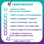 В прилагаемой картинке нужно выбрать доброе дело, сделать его, а после запостить с хэштэгом #добродень03 #добродом03 в ВК и Инстаграм.