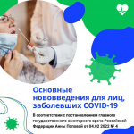 С 6 февраля 2022 года вступило в силу постановление Главного государственного санитарного врача Российской Федерации от 04.02.2022 г. №4, которым внесены изменения в санитарно-эпидемиологические правила СП 3.1.3597-20 «Профилактика новой коронавирусной инфекции (COVID-19)», утвержденные постановлением Главного государственного санитарного врача Российской Федерации от 22.05.202 №15.