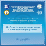 20-21 апреля 2022 г. проходит Международная научно-практическая конференция "Проблемы функционирования языков в полиэтническом пространстве". Конференция проводится в соответствии с планом мероприятий, посвященных 90–летию ФГБОУ ВО «Бурятский государственный университет имени Д.Банзарова».