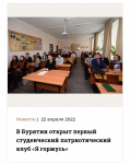 Источник сайт РВИО: https://rvio.histrf.ru/3/news/v-buryatii-otkryt-pervyj-studencheskij-patrioticheskij-klub-ya-gorzhus
