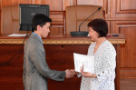 Программу Дня студенческой науки БГУ-2022 продолжили доклады победителей конкурса научных работ студентов БГУ. Результаты своих научных исследований представили Токтохоева Любовь, студентка Факультета биологии, географии и землепользования, и Таханова Инна, студентка 4 курса Педагогического института.
