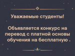Объявляется конкурс на перевод с платной основы обучения на бесплатную и конкурс на снижение стоимости платных образовательных услуг (скидки).