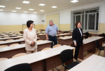 И вот торжественный момент запуска помещения нового корпуса состоялся сегодня, 1 сентября. Руководство вуза побывало в новом корпусе №9, чтоб на месте оценить качестов работ по отделке помещения, аудиторий. В корпусе теперь будет размещаться колледж БГУ, т.к. именно у них была большая потребность в учебном пространстве. В новом здании размещены большой лекционный зал на 90 мест, 8 аудиторий, что послужит большим подспорьем в образовательном процессе. Сегодня уже прошли первые занятия студентов в стенах корпуса.