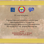 26 СЕНТЯБРЯ СОСТОИТСЯ ТОРЖЕСТВЕННОЕ СОБРАНИЕ КОЛЛЕКТИВА ПРЕПОДАВАТЕЛЕЙ И СТУДЕНТОВ ИСТОРИЧЕСКОГО ФАКУЛЬТЕТА, ПОСВЯЩЁННОЕ 90-ЛЕТИЮ БГУ им. ДОРЖИ БАНЗАРОВА!