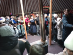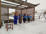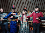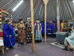 «Степной кочевник» порадовал удивительным гостеприимством: фольклорная группа в нарядных национальных одеждах встречали песнями, приветственными словами под удары барабана, а также обрядом-очищением гороо вокруг дымящегося в чугуне благовоний ая-ганги.