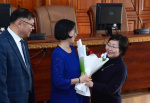 На заседании были награждены сотрудники БГУ, успешно защитившие диссертации на соискание учёной степени доктора и кандидата наук: декан ИФ Байкалов Н.С., доцент кафедры теории социальной работы Бадараев Д.Д., ассистент кафедры филологии стран Дальнего Востока Бритова В.Р., старший преподаватель кафедры гражданского права и процесса Гнеушева Т.Б., старший преподаватель кафедры гражданского права и процесса Батоболотова Е.Б.
