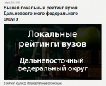 1 марта 2023 года вышел локальный рейтинг вузов Дальневосточного федерального округа. В рейтинг вошли 22 образовательные организации.