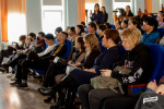 После официальной части перед студентами выступил известный экоактивист, основатель экологического движения "Мусор из головы" Болотов Ч.А. Чингис Аякович сумел зажечь зал, зарядить его на добрый экопозитивный заряд, и напомнить, что эковолонтеры всегда нужны особенно в нашем регионе!