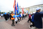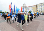 Шествие Советского района завершила колонна Бурятского государственного университета имени Доржи Банзарова. Колонну возглавлял ректор БГУ Дамдинов Алдар Валерьевич.