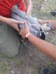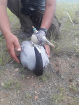 Всего было отловлено 26 птенцов, из них окольцовано 24 птенца, на 11 птенцов установлены GPS-GSM-передатчики. Это очень хороший результат. Так как найти родительскую пару с птенцами на просторах степей непросто, поскольку они строго территориальные птицы. И это возможно только передвигаясь на высокопроходном автомобиле. Найти семейную пару – полдела, надо еще бегом догнать птенца (!), одному сделать это очень сложно, поэтому бегать лучше командой 3-4 человека.