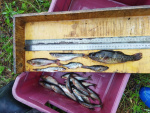 Основная наша деятельность состояла в отборе проб бентоса и вылове рыбы для проведения биологического анализа. Этот анализ включает в себя сбор определённых показателей, таких как общая длина особи, еë промысловая длина, определение пола и зрелости. Меня удивило, когда при вскрытии некоторых окуней обнаружилось, что среди рыб встречается такое явление как каннибализм. Но окуни это уже вид который чаще попадал в сети в следующем пункте - озере Арахлей.