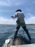 Когда выходили на воду ставить сети, я своими глазами увидела одну из угроз рыбным популяциям - чёрного баклана. Ещё с берега было видно, как они темной тучей парят над озером. Некоторые из них так отъедались, что когда мы подходили на лодке, они не могли взлететь и просто ныряли в воду.