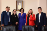 Для подписания соглашения о сотрудничестве встретились ректор БГУ Дамдинов Алдар Валерьевич, проректор по цифровой трансформации и развитию Архипов Сергей Валерьевич, региональный управляющий АО «Альфа-Банка» в г. Улан-Удэ - Егорова Светлана Владимировна, а также сотрудники Альфа-Банка - Поломошнова Полина Александровна и Кононова Валентина Борисовна.