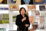 Одна из авторов представленных картин, Александра Лукинична Цыденовна, презентовала свои работы. Она выразила благодарность организаторам мероприятия и рассказала о своих картинах, истории их создания и значении.