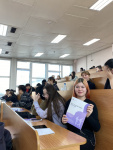 Заместитель начальника управления установления пенсий Буянтуева Я.Е., начальник отдела установления пенсий №1 Сыренова А.В. и руководитель группы по взаимодействию со СМИ и связям с общественностью Сандакова И.В. рассказали нашим студентам о системе пенсионного страхования в России и Республике Бурятия, пригласили их в ОСФР по РБ на работу.