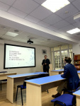 8 февраля среди иностранных студентов была проведена викторина «Русский язык 21 века». На этом интерактивном мероприятии преподаватели кафедры русского языка и общего языкознания кандидат филологических наук, доцент Зырянова Елена Васильевна и кандидат филологических наук, доцент, заведующий кафедрой русского языка и общего языкознания Матанцева Марина Борисовна сначала рассказали студентам-монголам о происходящих в русском языке 21 века изменениях, об особенностях развития современной письменной речи, об особенностях общения в соц.сетях. Затем, используя увлекательный формат «Своей игры», студенты 03513 гр. Коковин Никита и Сандакова Жалма провели со слушателями викторину по проблеме специфики употребления в современной письменной речи эмотиконов, эмодзи, стикеров и других средств интернет-коммуникации.