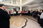Торжественное открытие выставки началось с приветсвенного слова ректора БГУ Алдара Валерьевича Дамдинова. Он поздравил всех мужчин с Днём защитника Отечества, рассказал об участии БГУ в помощи фронтовикам, и отметил важность мероприятия.