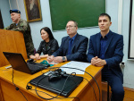 С удивлением и большим интересом ребята слушали стихи, которые по памяти читали сотрудники. А чтобы прочувствовать, что такое военная служба, один из студентов при помощи сотрудников был экипирован в настоящее снаряжение - бронежилет, каску и автомат. Это был символический пост, на который заступил и с достоинством выстоял наш студент.